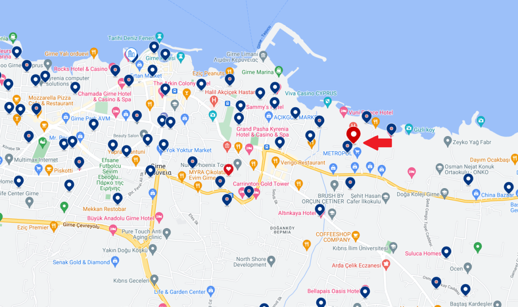 There is a wide range of accommodation options in Kyrenia. We recommend that participants make their own accommodation arrangements according to their preferences. Our congress coordinatorship does not have a contracted hotel. The location of Kyrenia University where the congress will be held and the list of hotels within walking distance to this location are displayed on the map below. Since the holiday season will not be ended in Cyprus on the date of the congress, we recommend that participants make early accommodation reservations. In this way, they will be able to find an inexpensive and trouble-free accommodation opportunity.